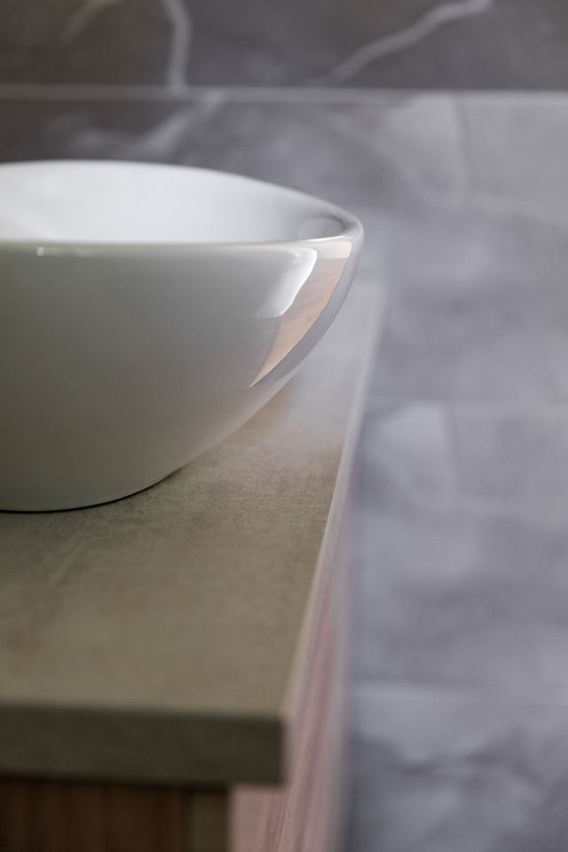 Asunnossa on käytetty luonnonsävyisiä materiaaleja, jotka tarjoavat ajattoman esteettisyyden ja luovat rauhoittavan ympäristön. Neutraalit sävyt ovat helposti yhdistettävissä eri sisustustyyleihin ja väreihin, mikä tekee tiloista monipuolisia ja mukautuvia. Samalla ne luovat harmonisen ja rentouttavan ilmapiirin, joka edistää hyvinvointia ja vähentää stressiä.